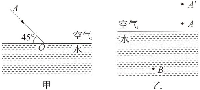 (2)(2024·安徽合肥一模)如图乙所示,小明潜入水中,其眼睛在B处观察空气中的物体A,A'是其所观察物体的像.请在图中画出小明观察物体A的折射光路图.