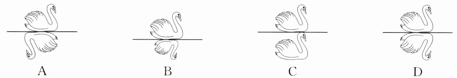 2.(2025·上海期中)初夏的傍晚,夕阳西垂,小华去公园的湖边散步。暖风徐,虫鸣鸟叫,还有蜂飞蝶舞,鱼儿嬉戏水中。岸边不远处,一只天鹅正在湖中浮游,身下是一个清晰的倒影,下列图中,符合小华看到的情景的是()