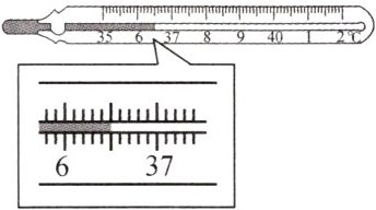 4. 体温计是根据液体____的规律制成的. 体温计离开人体后,直管内的水银____(选填“能”或“不能”)自动退回玻璃泡,所以体温计能离开人体读数. 如图所示的体温计示数是____$^{\circ}C$.