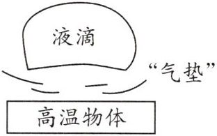 研究发现,当液体滴落在远高于自身沸点的高温物体表面时,一部分液体会迅速沸腾,不断产生气体,在液体和高温物体表面之间形成一个“气垫”,使它们之间不直接接触,这种现象叫作气垫效应,如图所示.