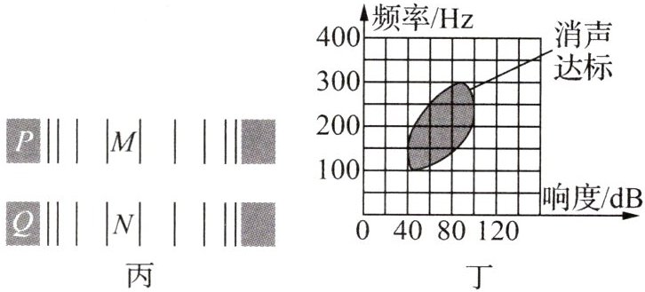 (3) 图丙中用疏密相间的竖线表示两列频率相同的声波,P、Q 表示密部,M、N表示疏部,则两列声波相遇时,消声效果不明显的情况是____.