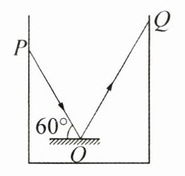 10. 如图所示,在一个空箱子中,一束光自P点发出,沿与镜面成60°角的方向射向平面镜,经O点反射后,在Q点形成一个亮斑。当入射光线不变时,将平面镜绕O点顺时针转30°,则下列说法正确的是()