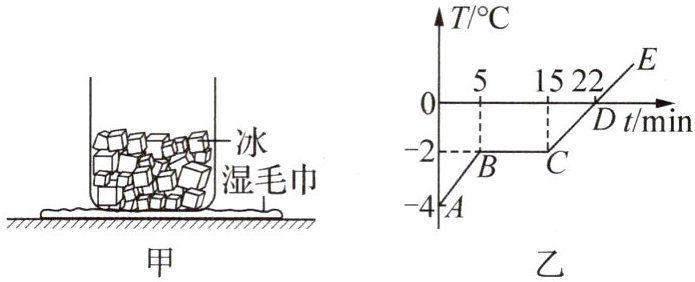 (3)将温度计放入易拉罐内,根据记录的实验数据绘制出如图乙所示的图像.某段时间内小亮观察到易拉罐里的液体不断增多,他猜想这段时间为图中的____段,罐中混合物处于____(选填“吸热”或“放热”)过程;图中____段时间内不会再有新的霜形成.
