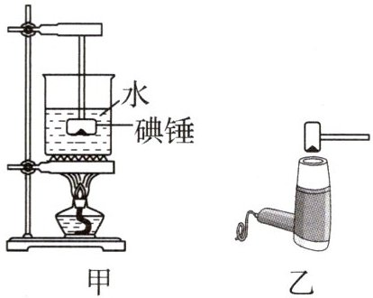 (3)小华用电吹风对“碘锤”吹热风,也完成了上述这种物态变化实验,如图乙所示,据此你可判断出电吹风的热风温度应满足什么要求?____.