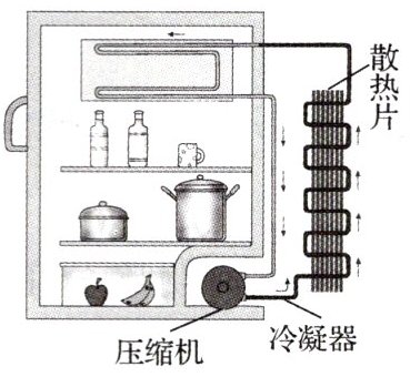 (2) 查阅资料,了解冰箱内制冷系统的工作流程、各部件的作用,结合所学物理知识分析涉及的物态变化以及吸放热情况。