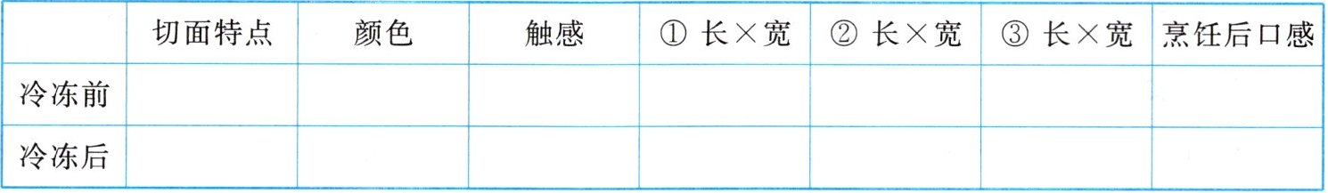 (1) 询问家人并结合实际,了解冰箱冷藏和冷冻的区别,以及冷藏和冷冻储存分别适合什么类型的食物。