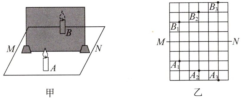 (2) 将点燃的蜡烛 A 放置在 MN 前面,将外形相同、没有点燃的蜡烛 B 在 MN 后面移动,直至与 A 的像完全重合,重合现象说明____;此时,蜡烛 B 所处的位置即为像的位置.
