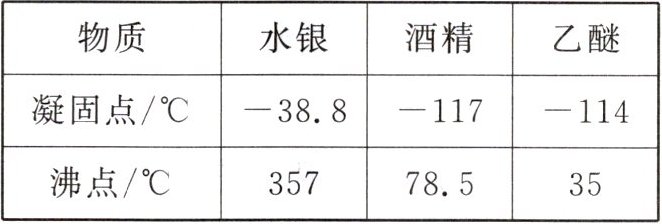 (5) 水沸腾后,烧杯上方出现的大量“白气”是水蒸气____(填物态变化名称)后形成的,该过程____(选填“吸收”或“放出”)热量.下表是标准大气压下几种物质的凝固点和沸点,则实验所选的温度计内的工作物质应该是____.