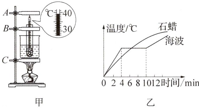 (3) 根据实验数据绘制的两种物质熔化时温度随时间变化的图像如图乙所示,由图像可知,石蜡是______(选填“晶体”或“非晶体”),海波熔化持续了______min.
