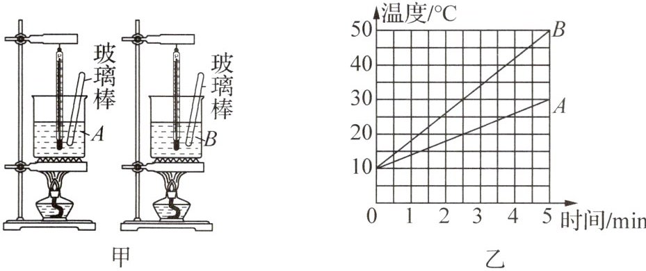 典例 1 如图甲所示是“探究不同物质吸热升温的现象”的实验装置。