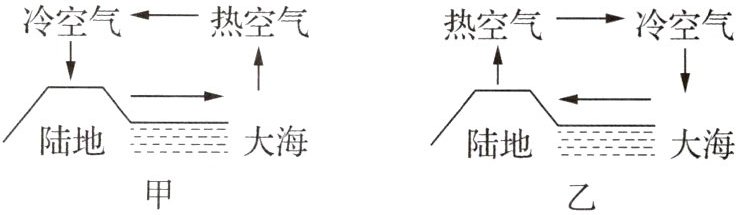 典例 3 (2025·江西吉安期末)小明去海边避暑度假,海边吹的陆风和海风统称海陆风,海陆风是由于地面和大海升温和降温的快慢不同,从而使空气对流形成的。如图是海陆风形成的示意图,其中____图反映白天海陆风的形成,这是因为陆地上砂石的比热容比海水的____。
