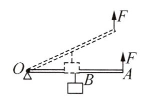 D. 杠杆转动到虚线位置的过程中,拉力F的大小保持不变