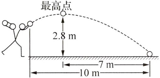 56 解析:已知实心球的重力 $ G = 20 \, \text{N} $,最高点到地面的竖直距离 $ h = 2.8 \, \text{m} $,则重力对实心球做的功 $ W = Gh = 20 \, \text{N} \times 2.8 \, \text{m} = 56 \, \text{J} $。