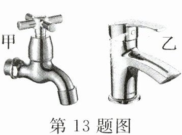 13. 小沈同学家里要进行装修,小沈和爸爸一起去市场买家用卫生间水龙头。他们到市场后发现有两种形状的水龙头,如图,甲水龙头在使用时相当于____,乙水龙头在使用时相当于____。(均选填“杠杆”“滑轮”或“轮轴”)