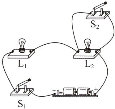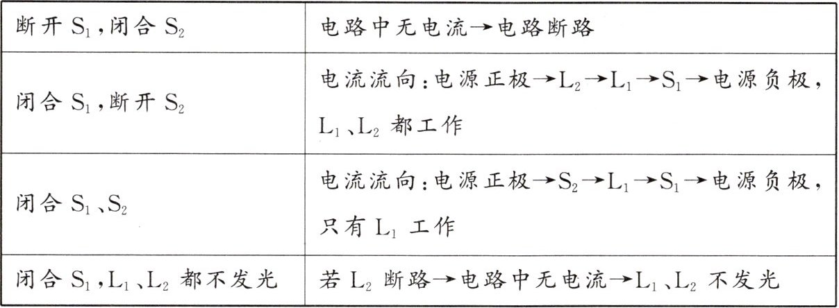 D. 只闭合$S_{1}$,发现$L_{1}和L_{2}$都不发光,则故障可能是$L_{2}$断路