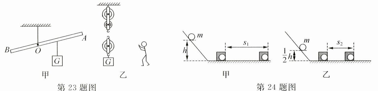 21.(2025·江苏苏州月考)如图所示,在测定杠杆机械效率的实验中,竖直向上匀速拉动弹簧测力计,测力计竖直移动的距离s为0.2m,物块重G为1.5N,上升的高度为0.3m,则杠杆的机械效率为____;使用杠杆提升物块的过程中,杠杆的重力约为____N。(不计整个机械的摩擦,杠杆质量分布均匀)