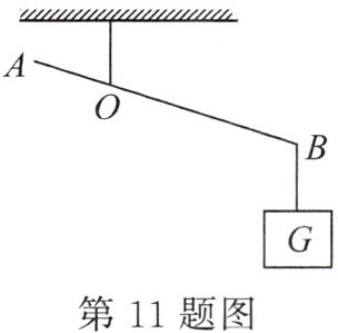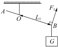 11. (2分)上分点四 如图,用一根细绳将杠杆AOB在O点悬挂起来,B处挂一重物G,请画出使杠杆在图中位置平衡时最小动力$F_{1}的示意图及其力臂L_{1}$.