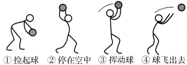 1. 新趋势 情境素材 (2分)投掷实心球是南京市体育中考项目之一.如图所示是扔实心球的四个过程,其中手对实心球做功的过程是 ()