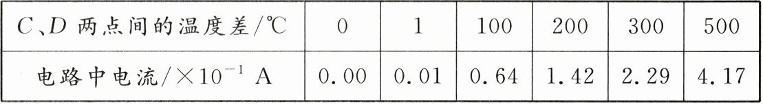 (2)分析数据可以发现,热电流与两接点间的温度差有关,温度差越大,电流越大;把图中的酒精灯移走,将C放入另一杯冰水混合物中,稳定后,两接点的温度相等均为$0^{\circ }C$,则温度差为零,由表中数据可知,此时电流表的示数变为零.