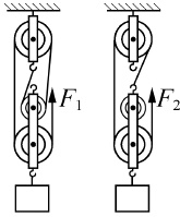 (1) 用轻质滑轮组将重力为G的物体提起来,在图甲中画出不同的绕线方法.要求:不计绳重和摩擦$,F_1= G/4,F_2= G/3.$