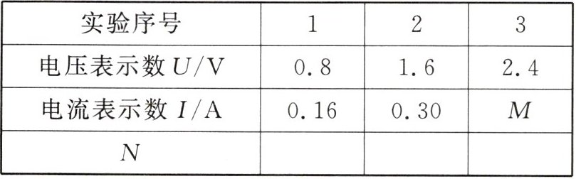 (4)排除故障后,实验测量数据如表所示,表格中M处电流值如图乙所示,数值是______,N处应填写的内容为______,$R_{x}$阻值测量的结果是______Ω(保留一位小数)。