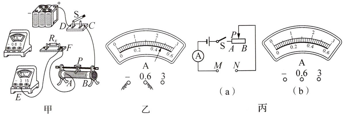 (5)利用图甲部分器材设计如图丙(a)所示的电路,可将电流表改装成直接测量电阻的仪表,M、N是连接待测电阻的接线柱,电流表表盘如图丙(b)所示,量程选择为0~0.6A,电源电压恒为6V。