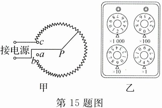 15. (2025·江苏淮安期末)如图甲,若要使图中接入电路的电阻丝阻值变大,滑片P应该____(选填“顺”或“逆”)时针旋转。如图乙,电阻箱的示数是____Ω。