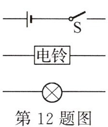 12. 新素养 科学思维 (2025·江苏南通期末·2分)某兴趣小组要为医院设计一个"应急呼叫器"电路,要求:开关断开时,电灯和电铃均不工作;开关闭合时,灯亮铃响,即使电灯因断路不亮,电铃仍可工作,请你完成如图电路.