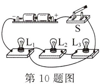 $ S_{3} $ $ S_{1} $、$ S_{2} $ 解析:在如图所示的电路中,要使灯泡$ L_{1} $和$ L_{2} $串联在电路中,电流只有一条路径,电流从电源正极出发,依次经过灯泡$ L_{2} $、$ L_{1} $,然后回到电源负极,故应闭合开关$ S_{3} $。若要使$ L_{1} $、$ L_{2} $并联在电路中,电流从电源正极出发,分别流经两只灯泡,汇合后回到电源的负极,故应闭合开关$ S_{1} $、$ S_{2} $。