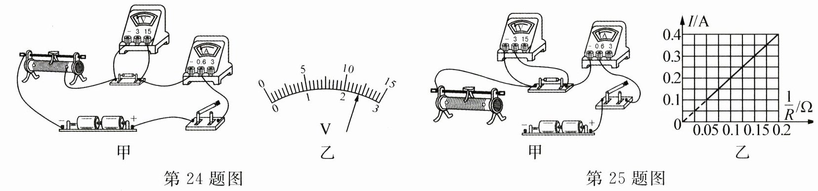 24. 新素养 科学探究(10分)图甲是“探究电流与电压关系”的实验电路。