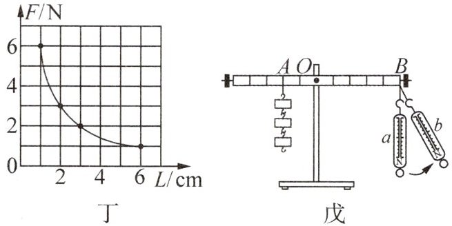 (4) 如图戊所示,实验中始终保持杠杆在水平位置平衡,将弹簧测力计由图中$a位置移至b$位置时,测力计示数将____(选填“变大”“变小”或“不变”).