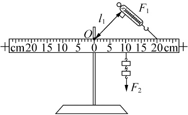(2)$F_{2}的力臂l_{2}$为______cm.当$F_{2}$的大小为1 N时,$F_{1}$竖直向上拉杠杆,仍使杠杆在水平位置平衡,$F_{1}= $______N.