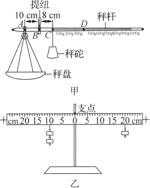 (2) 由图甲可知,利用该杆秤最多可称量____$g$的物体,$D$点处的刻度数为____$g$.