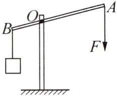 3. 如图,轻质杠杆$AB绕O$点转动,某同学在杠杆的左端挂一重为$G$的物体,在$A端施加一个竖直向下的力F$,使杠杆处于图示的位置静止.下列说法正确的是 ()