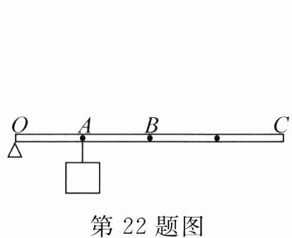 22. (2025·江苏扬州月考)如图是一根质量分布均匀的细木棒$OC$,$OA= \frac{1}{4}OC$,$B为OC$的中点,在$C$点竖直向上施力,将挂在$A$点的重为180N的物体匀速提升0.2m,木棒的机械效率为90%,木棒重为____N,$C$点拉力为____N。(不计摩擦)