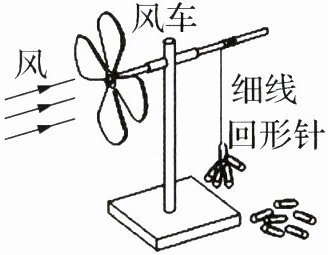 (3)实验时,逐渐增加挂在细线下的回形针的数量,直到细线恰好____提升回形针为止。若测得回形针上升的高度为$h$、所用的时间为$t$、回形针的总质量为$m$、回形针的个数为$n$,则风车做功的功率$P= $____(用测得的物理量的符号表示)。