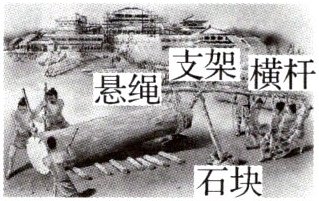 C 解析:在抬起巨木时,横杆相当于一个杠杆,动力臂大于阻力臂,由此可知横杆属于省力杠杆,故C正确;在抬巨木时,众人越靠近支架,动力臂越小,阻力、阻力臂不变,则动力越大,所以更费力,故A错误;只把悬绳向左移动一定距离,阻力臂增大,阻力、动力臂不变,则动力增大,更费力,不利于抬起巨木,故B错误;支架下端垫有底面积较大的石块,在压力一定时,通过增大受力面积的方法来减小支架对地面的压强,故D错误。