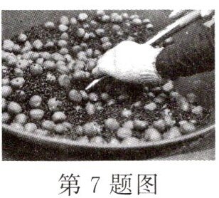 7. (2025·山东济南期中)糖炒栗子是人们钟爱的一道传统美食,如图所示,为了让栗子快速、均匀受热,常将砂石与栗子混合在一起翻炒,这主要是利用了砂石的______,相同质量的栗子和砂石吸收相同的热量,砂石的温度升高得更______.