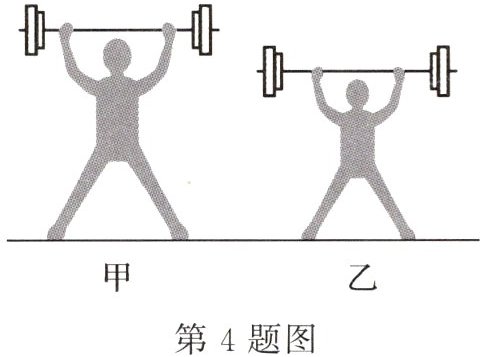 4. (2025·陕西西安期末·2分) 上分点二 甲、乙两位同学进行举杠铃比赛,如图所示,甲比乙高,他们在相同的时间内举起了相同的杠铃,则 ()