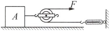 6. (2分)如图所示,物体A在水平拉力F的作用下,沿水平面以0.2m/s的速度匀速运动了5s,弹簧测力计的示数为4N(不计滑轮和绳子的质量及它们之间的摩擦),拉力F做的功及功率分别为 ()