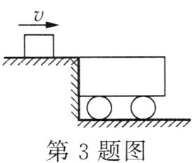 3. 新素养 科学思维 (2025·江苏南京月考)已知物体的动能表达式为$E_{k}= \frac {1}{2}mv^{2}$,其中m为物体的质量,v为物体的运动速度.如图所示,质量m_1= 8kg的平顶小车静止在光滑的水平轨道上,车顶与左侧光滑平台等高,平台上放置质量m_2= 2kg的小物块,小物块以5m/s的初速度向右运动,滑上小车.最终小物块静止在小车上,并以1m/s的速度与小车一起向右运动.若此过程中机械能全部转化为内能且全部被小物块吸收,则小物块内能增大了______J,能使小物块的温度升高______℃.[小物块的比热容为2×10^3J/(kg·℃)]