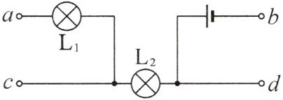 A 解析:若$a$与$b$、$c$与$d$连接,灯泡$L_{2}$被短路,只有$L_{1}$发光,故A正确;若$a$与$b$、$b$与$d$连接,电源短路,灯泡$L_{1}$、$L_{2}$都不发光,故B、D错误;若$a$与$b$、$b$与$c$连接,灯泡$L_{1}$被短路,只有$L_{2}$发光,故C错误.