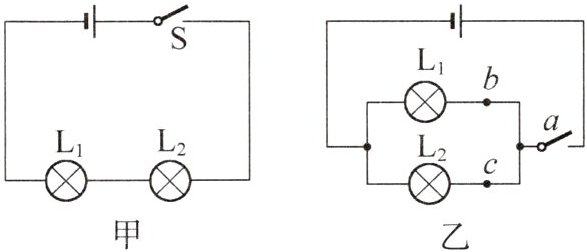 (3) 小莉又想研究“在并联电路中,开关的位置是否会影响它的控制作用”,于是她找来了器材并按如图乙所示电路连接实物进行实验.