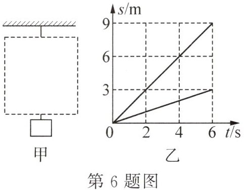 6.(2024·山东德州·2分)如图甲所示,虚线框内是两个滑轮连成的滑轮组,工人利用该滑轮组,用200N竖直向上的拉力$ F $将物体匀速提高3m,物体和绳子自由端的运动情况如图乙所示,已知动滑轮重120N,不计绳重和摩擦,下列说法正确的是 ()