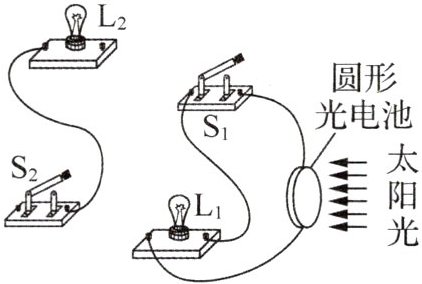 8. (2025·江苏无锡期末)用太阳能电池给两灯供电,请将电路连接完整,要求:两灯并联,$S_{1}$控制整个电路,$S_{2}单独控制L_{2}$.