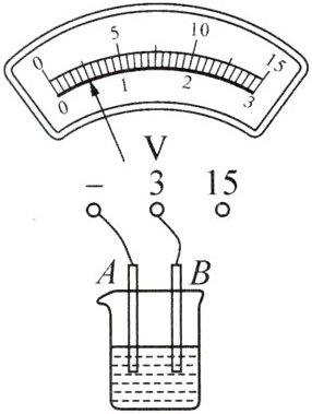 (1) 由图中电压表正向偏转知,$ B $ 为电源的正极,$ A $ 是负极,则 $ A $ 电极所用的是活动性比氢强的金属铅.