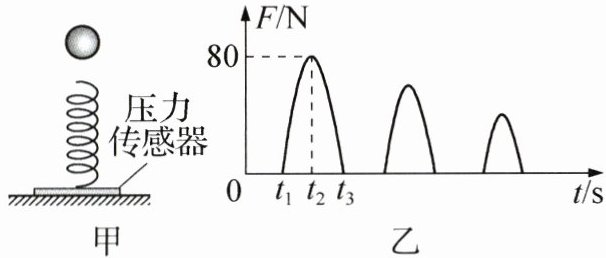 11. 如图甲所示,轻弹簧竖直固定在水平面上。$t= 0$时刻,将一重为G的金属小球从弹簧正上方某一高度处由静止释放,小球落到弹簧上压缩弹簧到最低点,然后被弹簧弹起,上升到一定高度后再下落,如此反复。通过安装在弹簧下端的压力传感器,测出这一过程弹簧弹力F随时间t变化的图像如图乙所示。则()