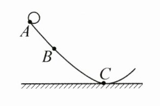 10. (2025·江苏无锡期中)如图所示,小球从竖直光滑轨道最高点A由静止下滑,经过某一点B,到达轨道最低点C,再沿轨道上升并飞出,到达空中最高点D(D点未画出)后落地。下列说法错误的是()