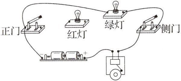 (2) 小德为收发室设计一个电路,该电路要实现的功能是红灯亮时,电铃响,表示正门来人;绿灯亮时,电铃响,表示侧门来人.连接完图示电路时,他发现手中只剩两根导线,请你用笔画线代替这两根导线,将电路按要求补充完整(要求电路中所有导线不能交叉).