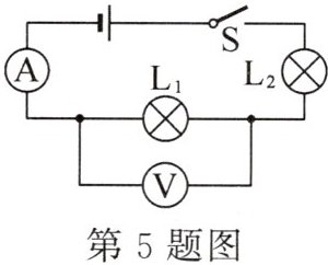 5. 如图所示,电源电压不变,两只电表均完好,开关S闭合后,发现只有一只电表的指针发生偏转.若电路中只有一个灯泡出现了故障,则可能是 ()